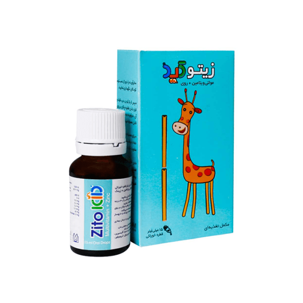 قطره زیتو کید الحاوی حاوی ۹ ویتامین ضروری (A ،C ،E ،D3 ،B1 ،B2 ،B3 ،B6 ،B12) به همراه زینک می باشد. این مکمل برای کودکان ۷ ماه تا ۳ سال جهت حفظ سلامت و کمک به رشد ذهنی و جسمی آنها از طریق تامین ویتامین های ضروری به همراه زینک در نظر گرفته شده است. در قطره زیتو کید با جایگزینی ملح گلوکونات به جای سولفات علاوه بر کاهش عوارض گوارشی ناشی از مصرف زینک، میزان جذب این عنصر در بدن افزایش یافته است.