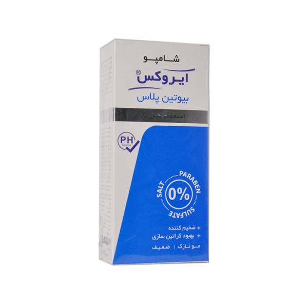 شامپو ایروکس بیوتین پلاس در افزایش ضخامت و استحکام ساقه موها نقش موثری دارد. این شامپو برای موهای نازک و کم حجم طراحی شده و میزان pH آن با پوست سر و موها سازگاری دارد.